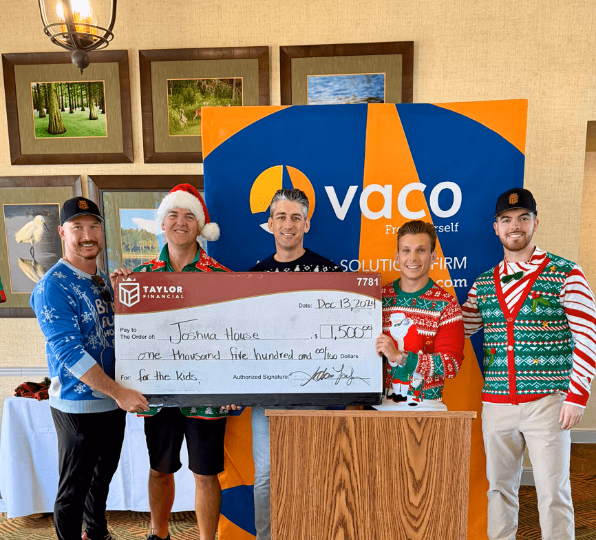 Tacky sweaters, great swings, and giving back! Taylor Financial proudly donated $1,500 to the 2024 Vaco Charity Golf Tournament to support Joshua House and at-risk youth in our community.